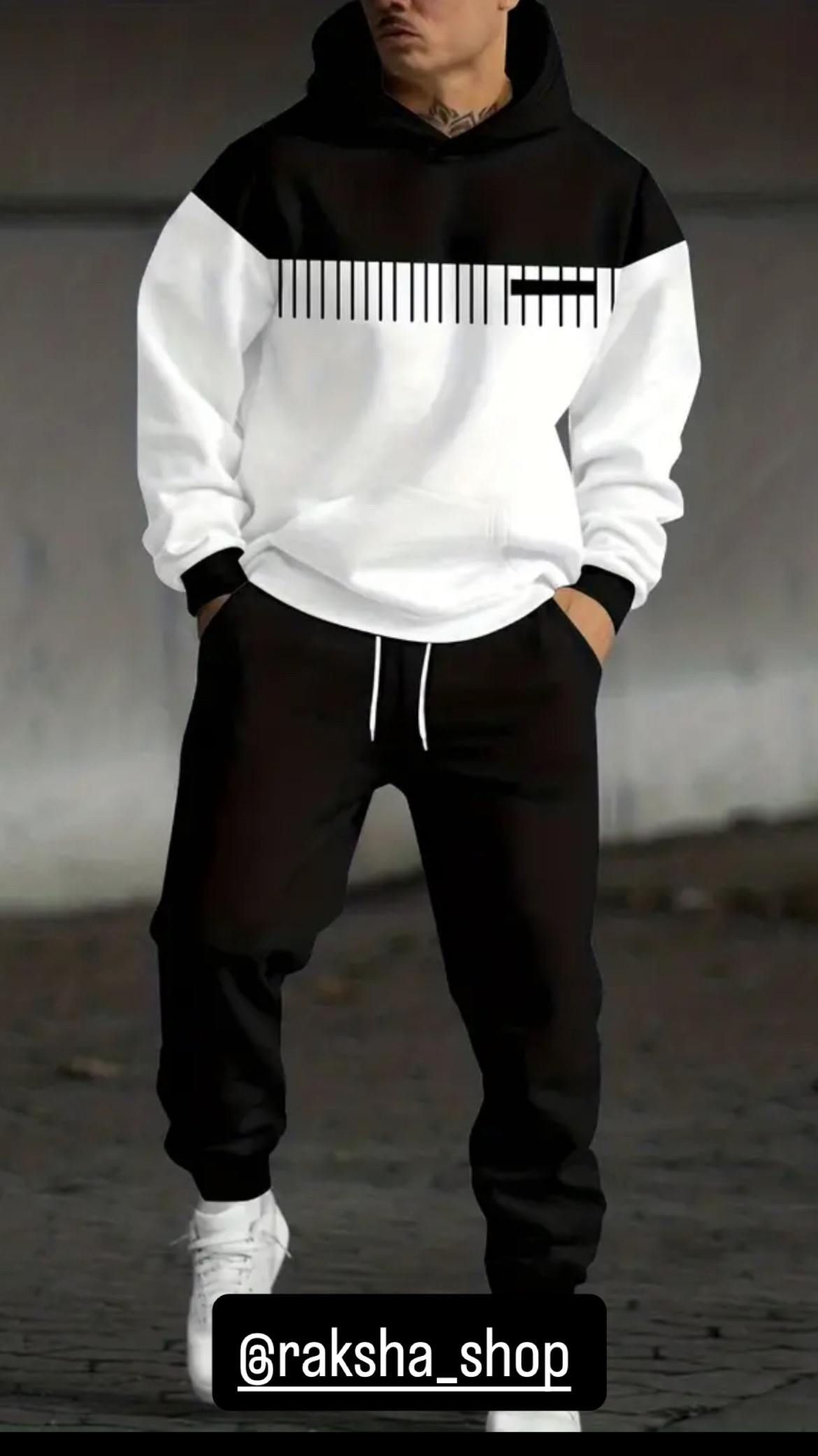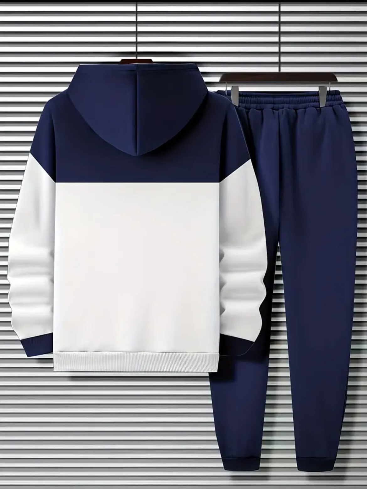 ست هودی و شلوار راحتی مردانه با طرح راهراه ترکیب رنگ روشن و متضاد برای استایلی خاص و چشمگیر پارچه کشی، مدل آزاد و گرم — بهترین انتخاب برای پاییز و زمستون.