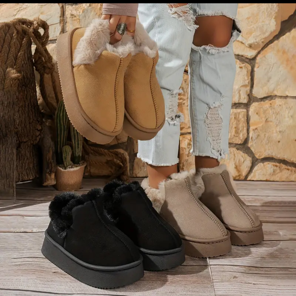 داخل چکمه با پارچه مخمل لطیف و گرم پوشیده شده که پا را در هوای سرد کاملاً گرم نگه میدارد. طراحی سبک و انعطافپذیر آن باعث میشود برای استفاده روزمره در خانه یا بیرون بسیار راحت باشد.