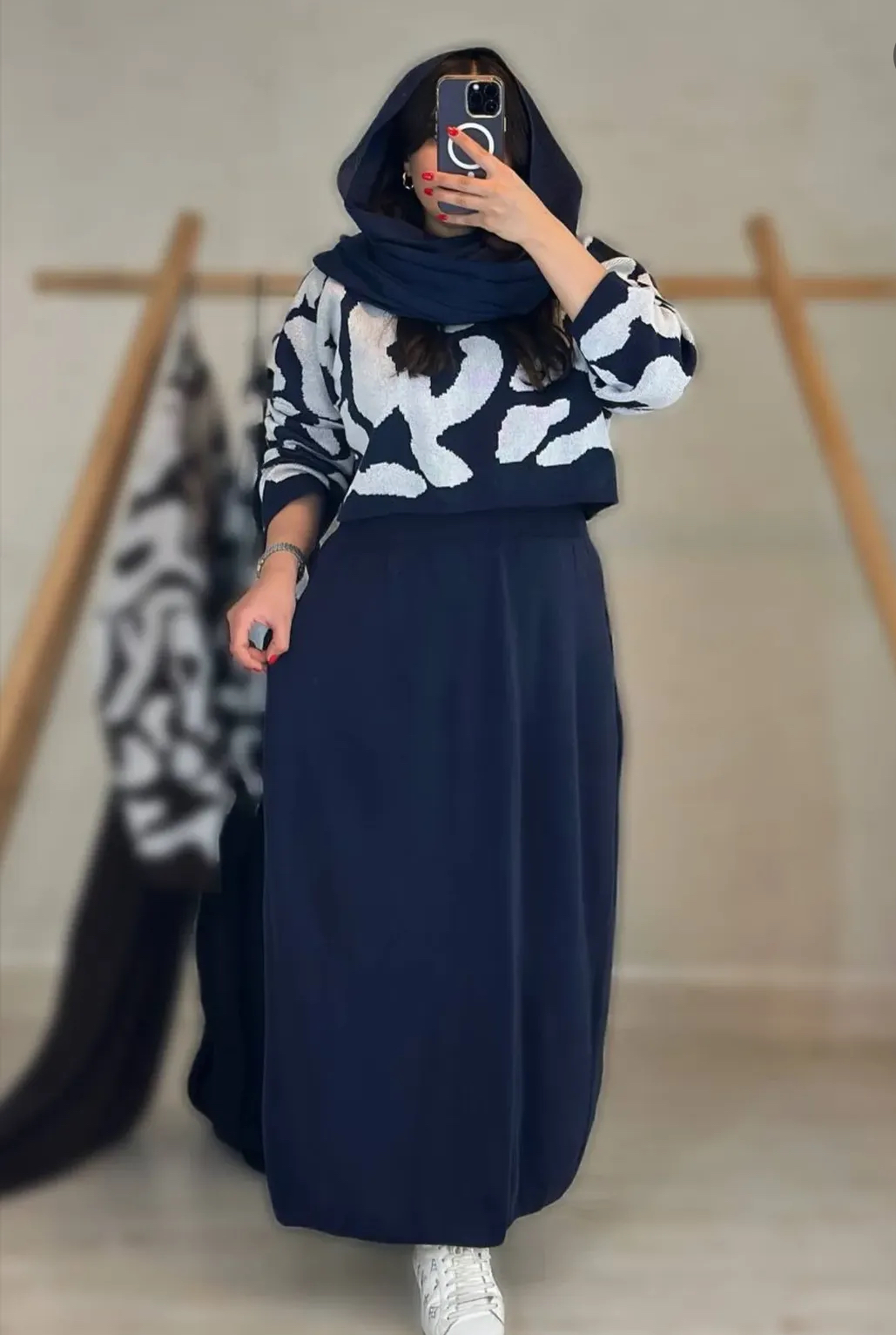 ست کت و دامن کلاهدار زمستانی