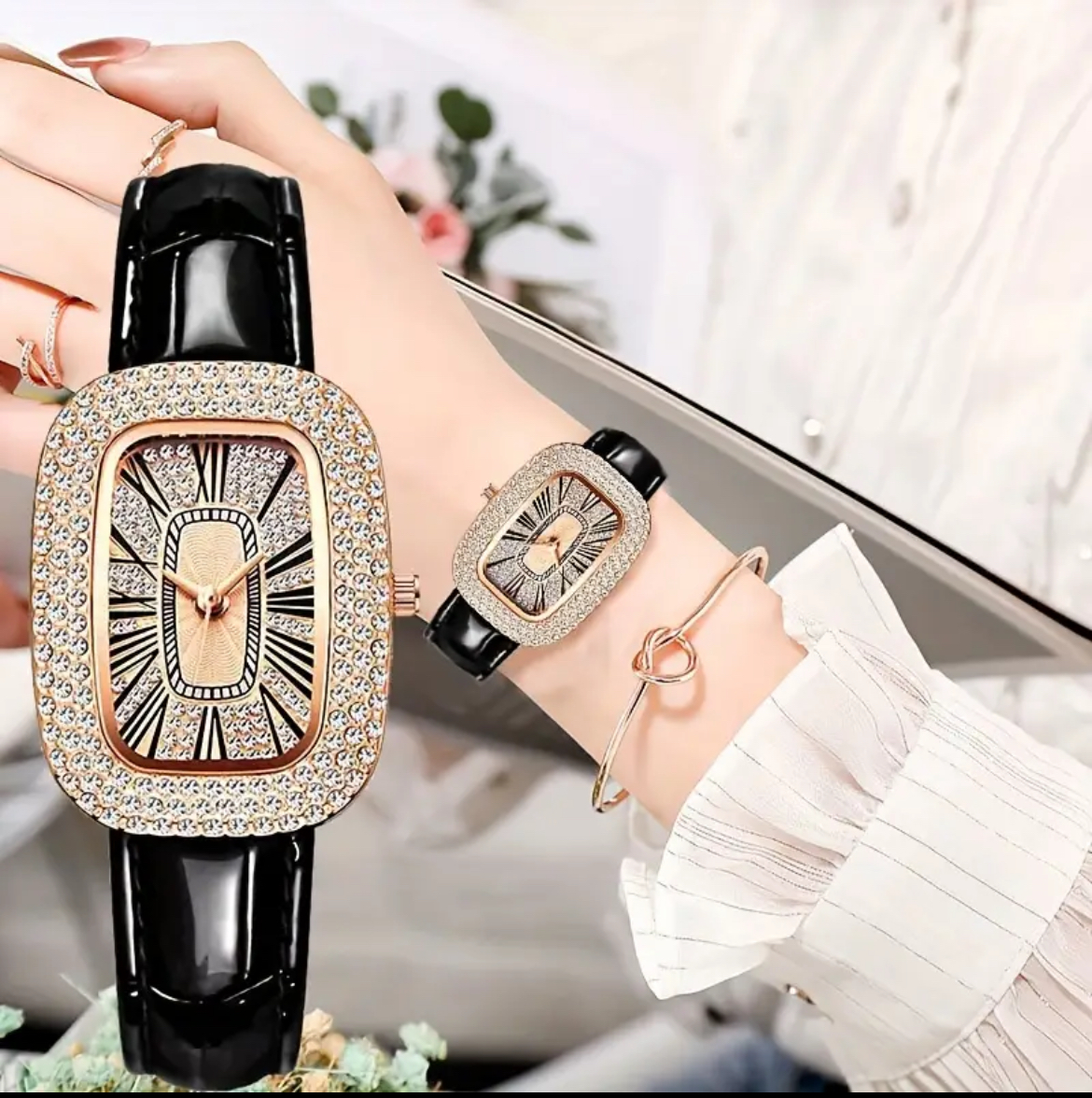 ۱ عدد ساعت کوارتز با نگینهای تزئینی گرد و ۴ عدد سرویس جواهرات